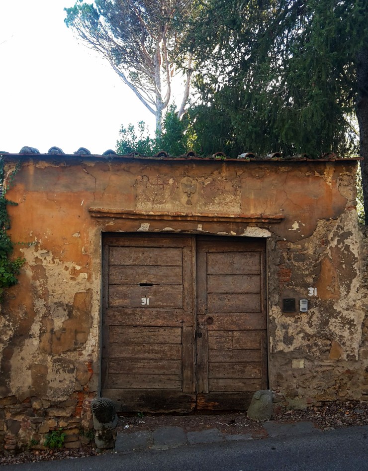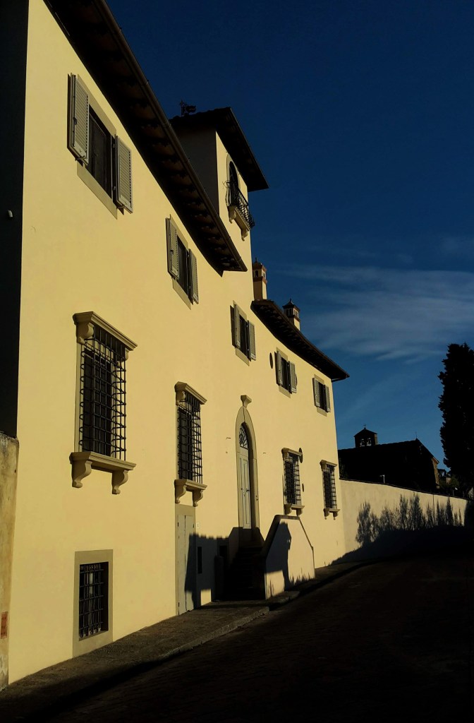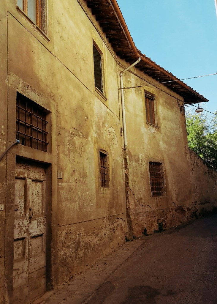 We go left and then turn right into Via Suor Maria Celeste, named after Galileo’s daughter (born Virginia Galilei) who lived in a convent on this street. We are walking in the neighborhood of Arcetri, which is tightly related to Galileo. The observatory from where he made some of his astronomical discoveries is here, still in use as part of the University of Florence. You will notice its white dome many times as we walk around these hills.