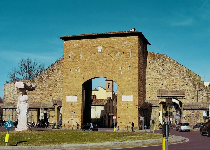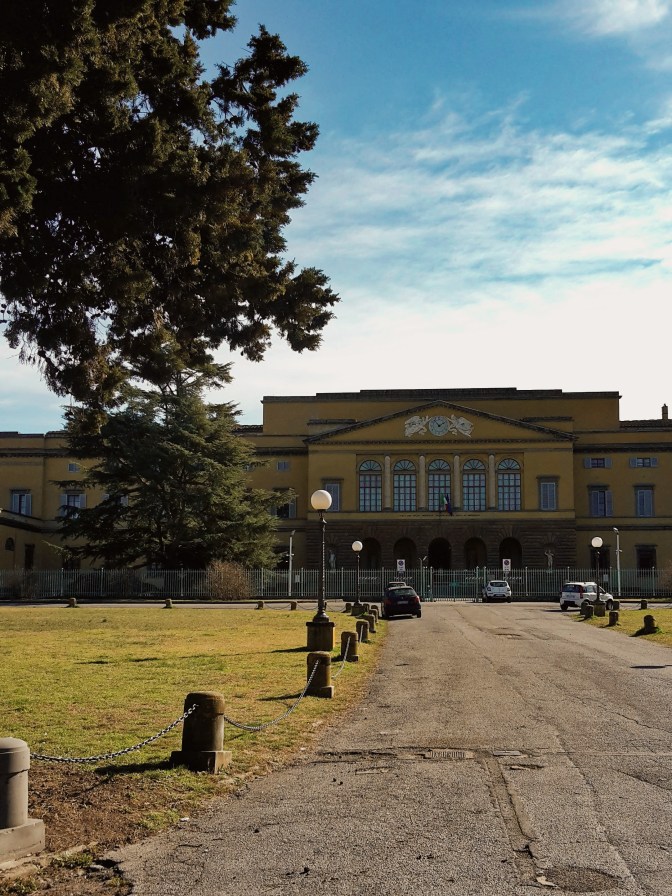 Today is another gorgeous winter day though. It’s a waste to spend it inside. So, how can we enjoy Florence without being in the middle of the hustle and bustle? Well, I think I know just the right path for us to walk on. From Porta Romana, the imposing 14th century city gate that controled passage to and from Rome, we follow Via di Poggio Imperiale on a path that shifts from gravel to grass back to gravel as it ascends above the road, giving us the impression of walking on the city ramparts. We pass several elegant villas and townhouses before arriving at Villa di Poggio Imperiale, a Medici residence back in the day that is now a public school. Stone lions guard the sides of the road and the villa dominates the scene at the top of the hill.