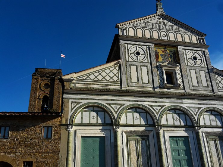 You thought our day was over? This awesome panorama just reinvigorated me, so we will head for the last leg of our walk through charming Florentine streets. First, a detour uphill to visit my favorite church in Florence: San Miniato al Monte. This 11th century basilica in romanesque style has a beautiful marble facade and it was erected in the site where the martyr St. Miniato died. As the story goes, the saint miraculously walked uphill with his head under his arm after a roman soldier beheaded him by the Arno river. Those were the days! With our heads firmly attached to our neck, we can better enjoy another gorgeous view of Florence before continuing on Via delle Porte Sante, and then turning right on Via dell’Erta Canina after we cross the road.
