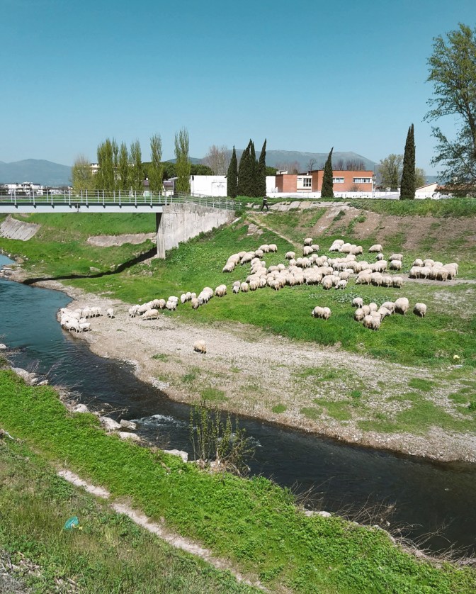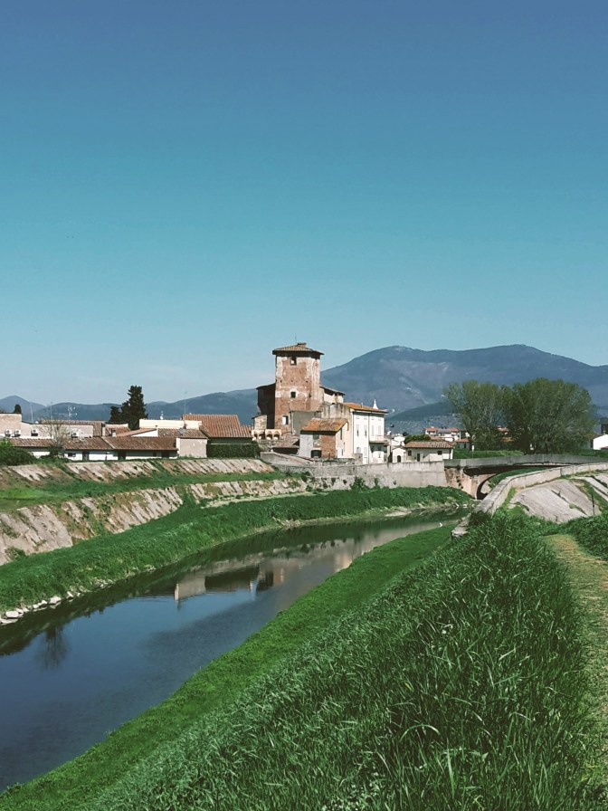 I chose the town of Signa as the starting point for a couple of reasons: it’s an easy train ride (20 mins) from Santa Maria Novella station in Florence and I thought I would start nice and easy. We had a mild winter and hadn’t seen rain in a while, and it wasn’t full summer yet. So, less bugs, not as hot, a great time to hike across the plain of the Bisenzio river, passing Campi Bisenzio on the way to Calenzano.