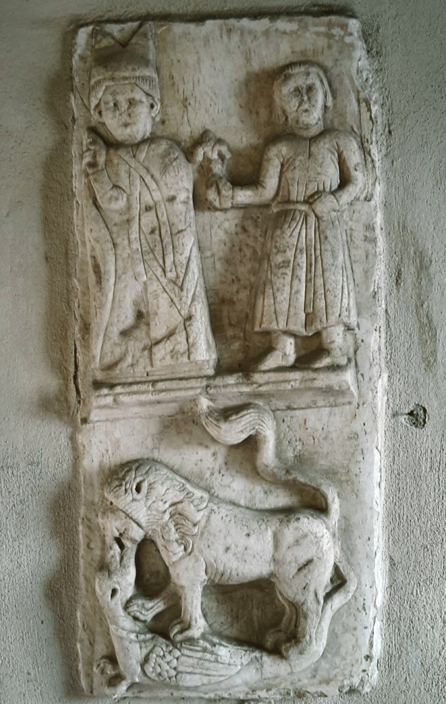 Detail of medieval bas-relief in the cloisters of Signa’s St. John the Baptist