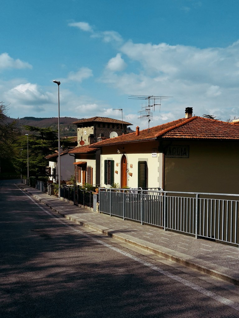 Instead, keep going on the path ahead which goes around the hillock and takes us through the neighborhood of Sommavilla to eventually arrive at the campsite of Poggio degli Uccellini. We are back on asphalt and soon after we reach the town of Bivigliano. The parking area at the end of Via Roma have the best views of Monte Morello and the Mugello beyond. The town itself is not much to look at, the most interesting attraction around here is the monastery of Monte Senario. Today, I’m not taking the detour to visit it but you can read more about it on this post: