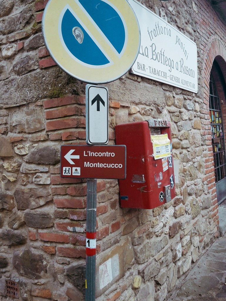 But first things first! We continue from the train staion of Pontassieve, taking the underground passage to Via Giuseppe Verdi. We turn right and head onto Via di Rosano, which will lead us over the highway, then over the Arno, to the quaint town of Rosano (nowadays a neighborhood of Rignano sull’Arno) cozily nestled at the feet of the Florentine hills. I pause to admire the bell tower of Santa Maria a Rosano, an 8th century monastery and one of the oldest in Italy. We take a right after crossing the bridge and soon we find the signs of the Renaissance Ring, which goes up on Borgo del Monastero towards the convent of Incontro.