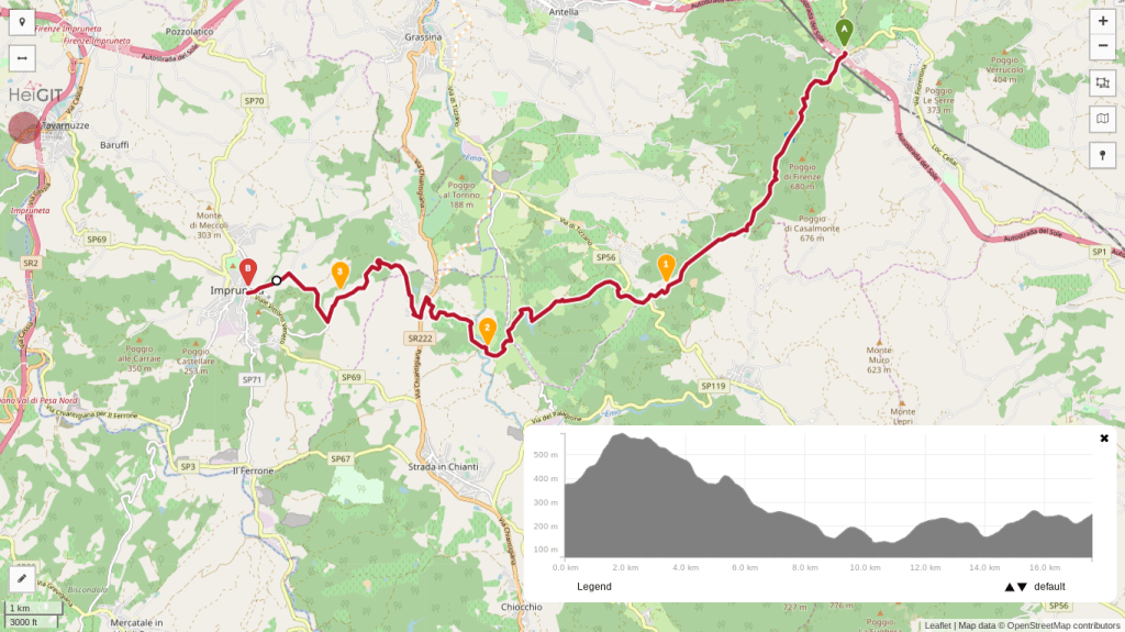 On the southeast section of the Renaissance Ring, our surroundings will be extremely lush (especially if you choose to hike it in late spring or summer) and we’ll gape at some of the most spectacular views of Florence and the plains beyond it. We’ll cross the Chianti, more precisely the Chianti Colli Fiorentini, a subzone assigned to the hills of Florence. Technically, this isn’t the Chianti Classico, where the famous wine was originally developed and classified, but gorgeous just the same. My only caveat is that, unfortunately, the trail is badly maintained as it nears Impruneta. You may want to take a detour by the town of Santa Cristina, but the rest of your hike will be on asphalt.