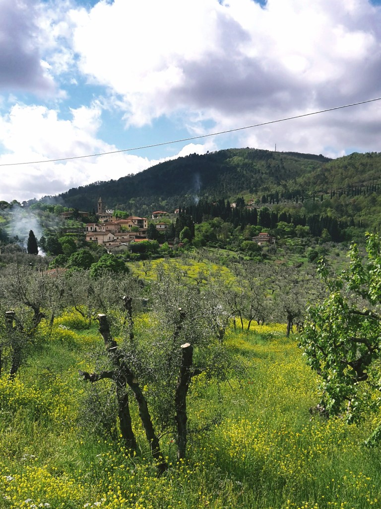 We head down to San Donato in Collina through the tiny communities of Croce dei Frati and Monteccuco. Pay attention to the trail marks as you go through them. From Croce dei Frati, it’s a rocky path uphill. As you reach Montecucco, keep going straight south on the road until you find a narrow downhill path bordering a wire fence. We eventually meet the walls of a private property, which we’ll follow downhill for a few minutes before we approach Via Roma. It’s a short hike on this busy provincial road and the welcoming sight of San Donato in Collina makes up for it.