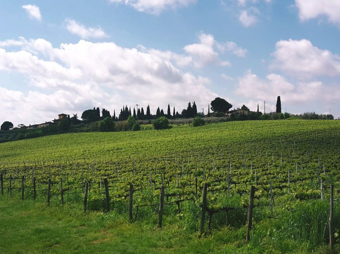 I’d recommend a detour to visit the Certosa, but make sure you check the times of the guided visits. The wealthy Acciaiuoli family funded the construction of the imposing charterhouse in 14th century and to this date a handful of cistercian monks live an austere life within its cloisters. They substituted the original and stricter carthusians in 1958. Continuing the hike, from via di San Cristofano we enjoy great views of the church of San Lorenzo within the walls of the Certosa. Further up the road, we witness an extraordinary panorama of Florence, it’s hard to turn your back and proceed on the trail. Soon, we pass by extensive vineyards and the elegant 16th century Villa I Collazzi before reaching Via Volterrana. We’ll follow this provincial road for a few hundred yards – pay attention to the trail marks around this area – we get out of the road on the left after the guard rail, then go up through a path in the woods and turn right to go down, returning to Via Volterrana.