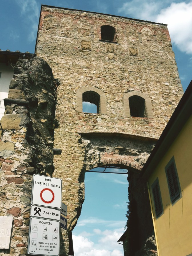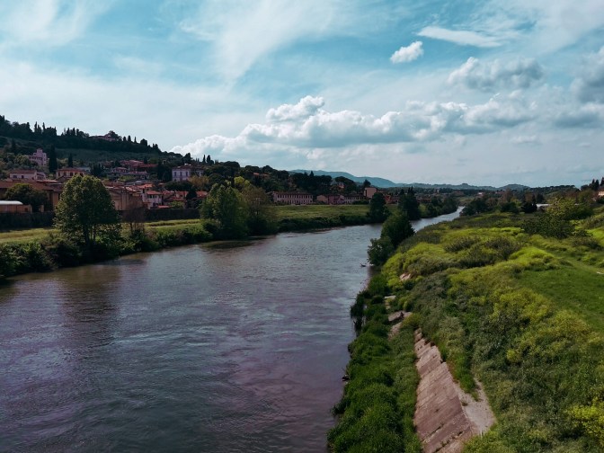 By Roncigliano, we meet asphalt once again. After we pass vineyards and a private property, we take a left into Via Roveta. The trail contours the hill taking us down to Via delle Fonti where we cross a bridge over the FI-PI-LI highway and reach Via di Naiale. The historical center of Lastra a Signa is less than an hour away. As we approach it, walking on Via San Romolo and Via di Poggio Vittorio we have a chance to enjoy a wonderful view of Signa, perched on the hill across the Arno river, and the plains of the Bisenzio river where we started our hike on the Renaissance Ring. We enter the town through Portone di Baccio, one of the city gates, and pass by the 15th century Spedale di Sant’Antonio and its beautiful loggia. We turn left on Via 24 Maggio to reach Signa through Porta Pisana – the gate that opens to Pisa. We’ll go under the railway and then the road, before finding a pedestrian bridge that crosses the Arno by Piazza Guido Andrei.
