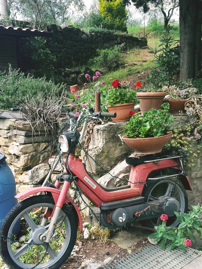 We depart from Impruneta but not before checking out the charming 11th century church of Santa Maria dell’Impruneta and its elegant 17th century portico. Unfortunately, the interior was mostly destroyed during WW2, including its carved wood ceiling in baroque style. There are some 1940s photos by the entrance that will give you an idea of the magnitude of this disaster. Luckly, the small temples on the right and left sides of the altar survived with their exquisite 15th century panels in glazed terracotta by Luca della Robbia. They also house a 13th century image of the Virgin Mary, fervently worshipped by locals for having saved Impruneta from the plague and other hazards. If you are interested in religious artifacts, you should visit the treasury museum within the church, it’s one of the best in Tuscany.