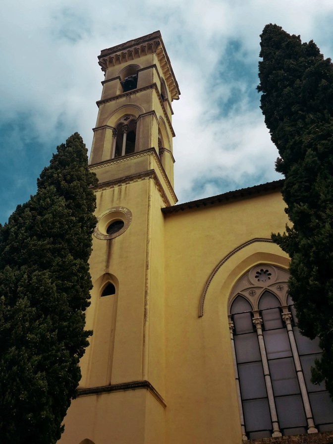 Can you spot the bell tower of Santa Maria dell’Impruneta in the faint background?