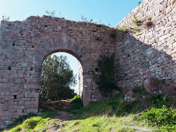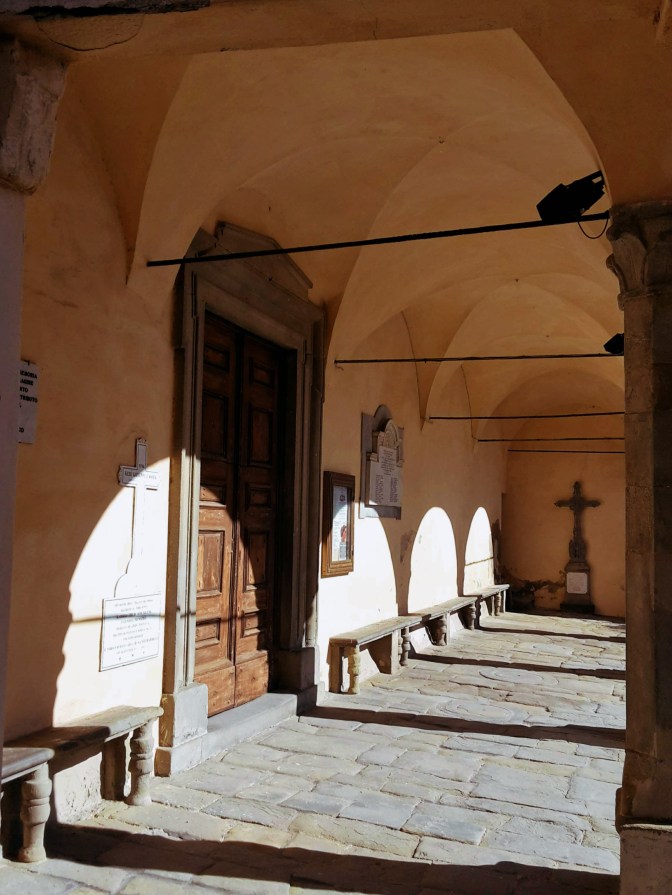 The impressive views of Montevettolini, Valdinievole, the Nievole river and the swampland around Fucecchio are worth several stops on the way up. The Padule di Fucecchio is an important nature preserve in Tuscany and one of my future hiking destinations. We arrive in Monsummano Alto through a medieval archway, long in disuse, but it makes for a grandiose ending for this hike. We find the 13th century church of San Nicolao and a mini-archeological site with the foundations of medieval structures. The town itself isn’t very lively, just a couple of houses, a restaurant and a workshop. But the amazing views make the trip up here absolutely worth it.