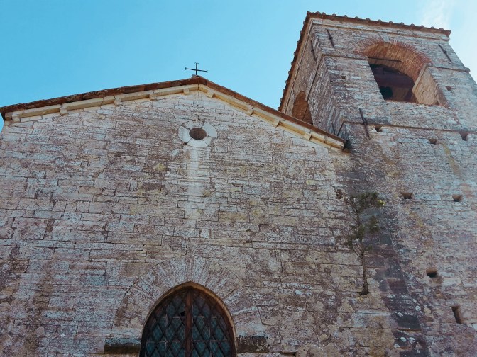 Soon we reach a fork where I leave the CAI n. 300, and go on an unmarked path through Fuso and Casa, reaching Via del Vaticano. This is a straighter path to Montevettolini, although you’d probably want to study the map before venturing on it. We’ll eventually find Poggio Tondo and head downhill while enjoying the picturesque beauty of old farmhouses in the Montalbano. We can admire Montevettolini and the imposing 16th century Medici villa atop the hill as we progress. This sleepy town was once a fort, part of the military infrastructure of the area, but there isn’t much happening these days. It’s very peaceful by the medieval church of Santi Michele Arcangelo e Lorenzo Martire. After enjoying a few moments of contemplation, we continue towards Monsummano Alto.