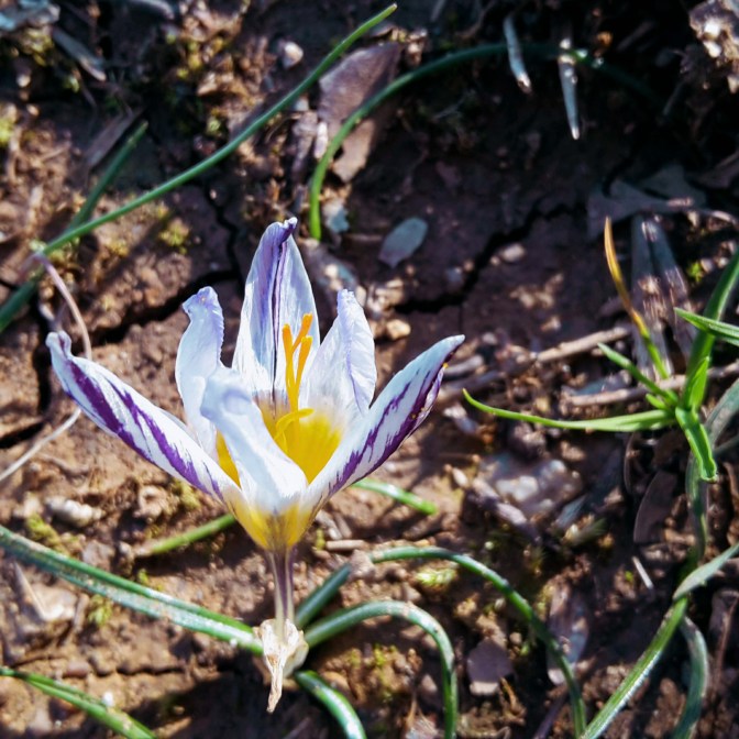 Path CAI n. 300 starts uphill on Via Ville and then onto Via Monte. On late winter/early spring days, the acrid smell of burning leaves fills the air. Early spring is the time of the year when olive trees are being pruned in Tuscany. Farmers pile up the cut branches in big mounds and set them on fire. Bright green grass and wild flowers decoring the sides of the road make for a pretty but intense first hour of hiking.
