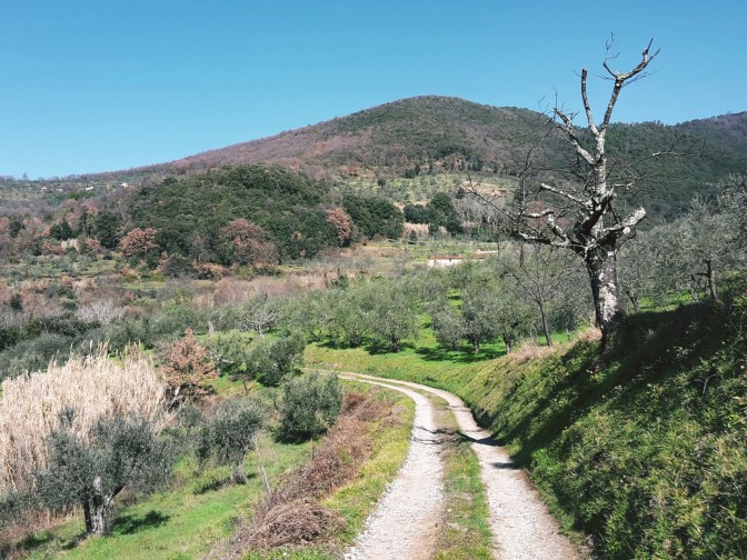 My mind wandered through that period of history until I was brought back to our days by the loud roar of motorbikes coming down the trail. Yes, in Tuscany we share trails with everyone – motorbikes, four wheelers, mountain bikers, hunters and the occasional wild boar. The good news is that the uphill part was almost over as the trail opened to a lovely olive grove.