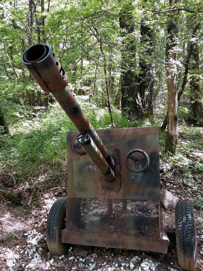 The trail along the park of the Gothic Line is very peaceful, immersed in a gorgeous beech forest. As I walked on this trail, I couldn’t help thinking how different it must have been in 1944. The history of WW2 is marked along the way on plaques and commemorative stones. You can feel the energy of the place in the air and the unusual silence completes the mood. At a few spots, the forest opens to a spectacular panorama of the Mugello valley below and the man-made Bilacino lake shines against the sky.
